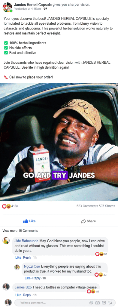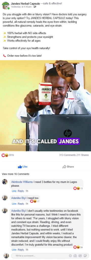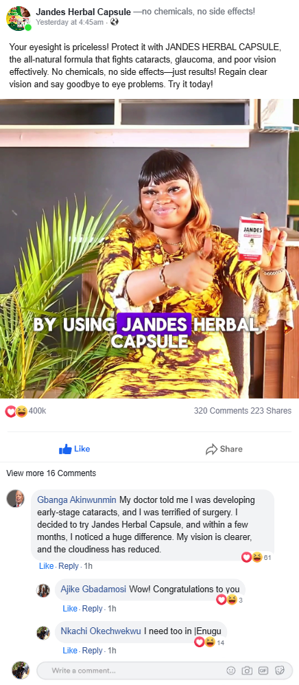 Don’t let poor vision steal your destiny. Join over 3,247 Nigerians who have already transformed their lives with Jandes Herbal Capsule.